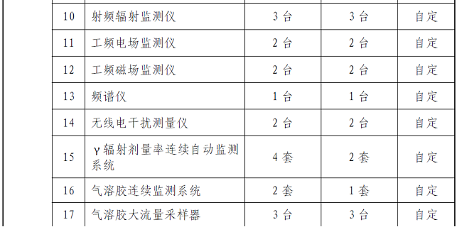 六、专项辐射环境监测仪器配置