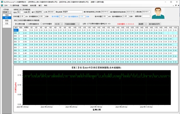 11、管理软件:可选配强大的RenRiPersonal个人剂量管理软件,软件可计算日累积、月累积、年累积、辐照时长、日平均剂量率、扣除或不扣除本底辐射,瞬间显示86400条/天的剂量率,以图谱或文字的方式展现数据;可为特定用户提供定制开发或二次开发。